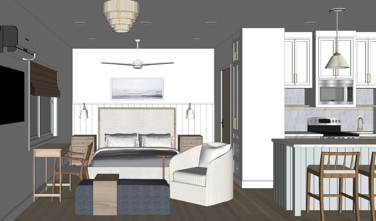 This home was designed to draw inspiration from the timeless elegance of mid-century and coastal design, seamlessly blending organic textures with a neutral color palette. Soft pops of blues, greens, and warm rust tones were thoughtfully incorporated throughout, infusing the space with a calming yet vibrant energy.