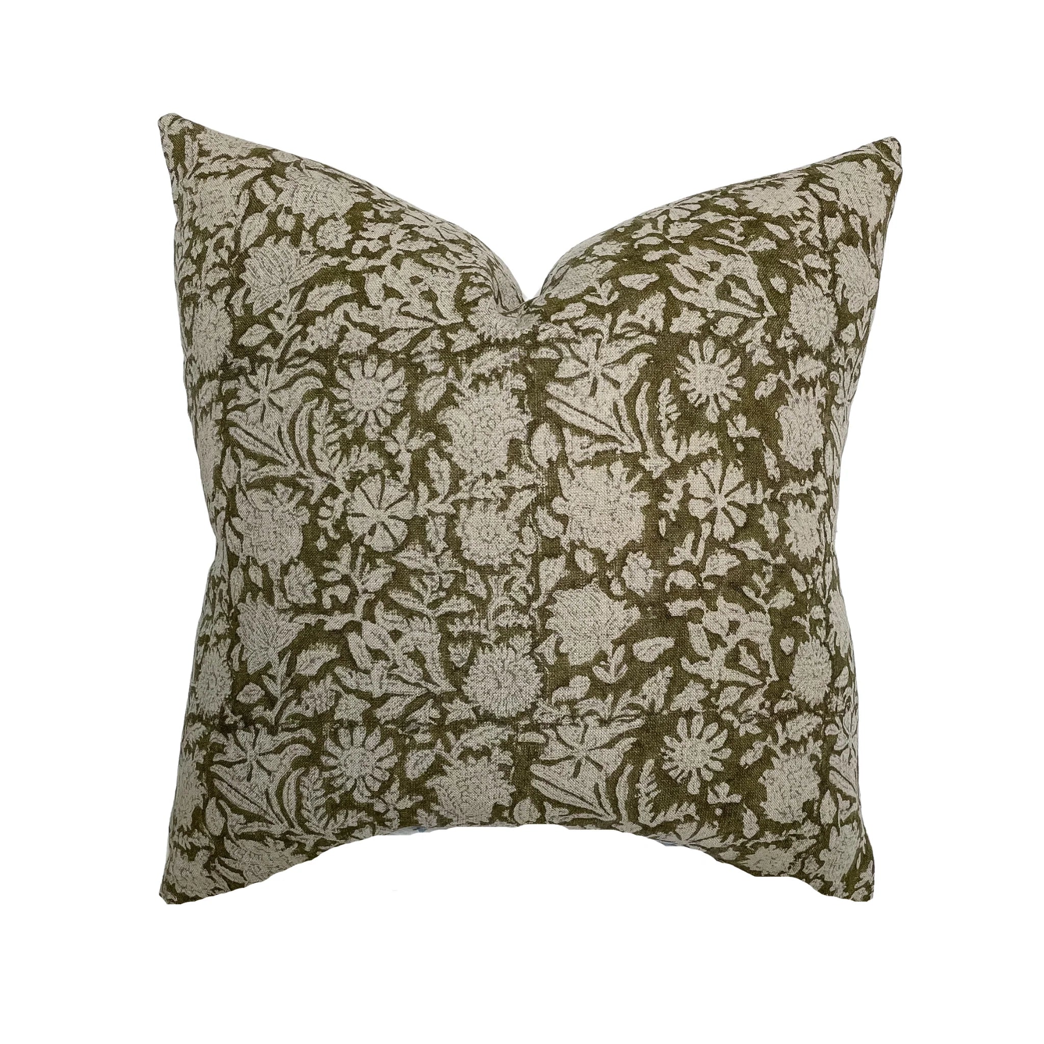 The Linde Floral Pillow brings botanical elegance to any room with its rich dark green backdrop and intricate floral design. This generously sized 22-inch pillow serves as a striking focal point on your sofa, bed, or accent chair, instantly elevating your décor with sophisticated color and pattern. The lush florals add depth and visual interest while the deep green tone complements both modern and traditional interiors. Perfect for layering with solid pillows or standing alone as a statement piece, this pillow transforms your space into a curated sanctuary that reflects your refined taste.
