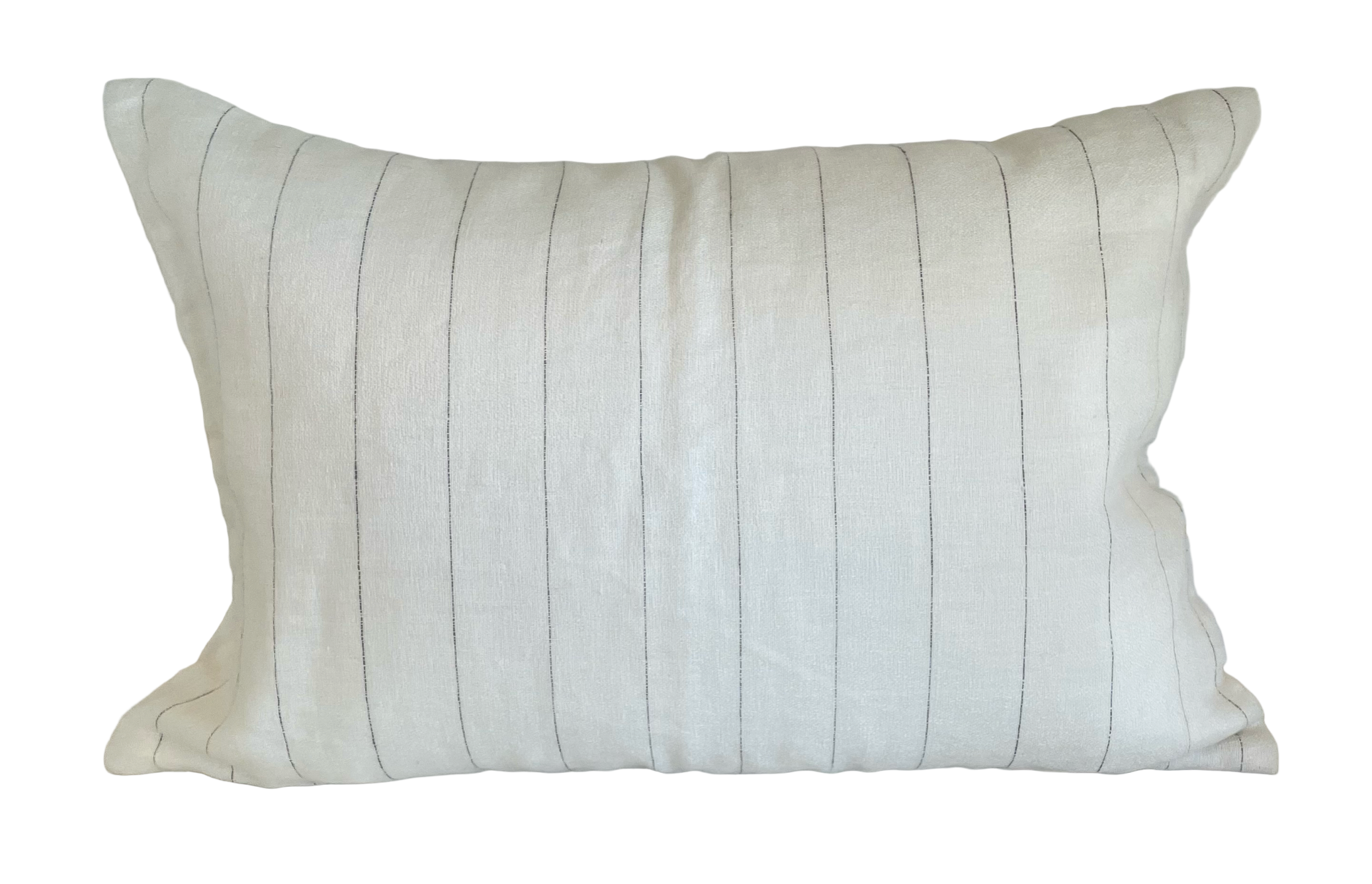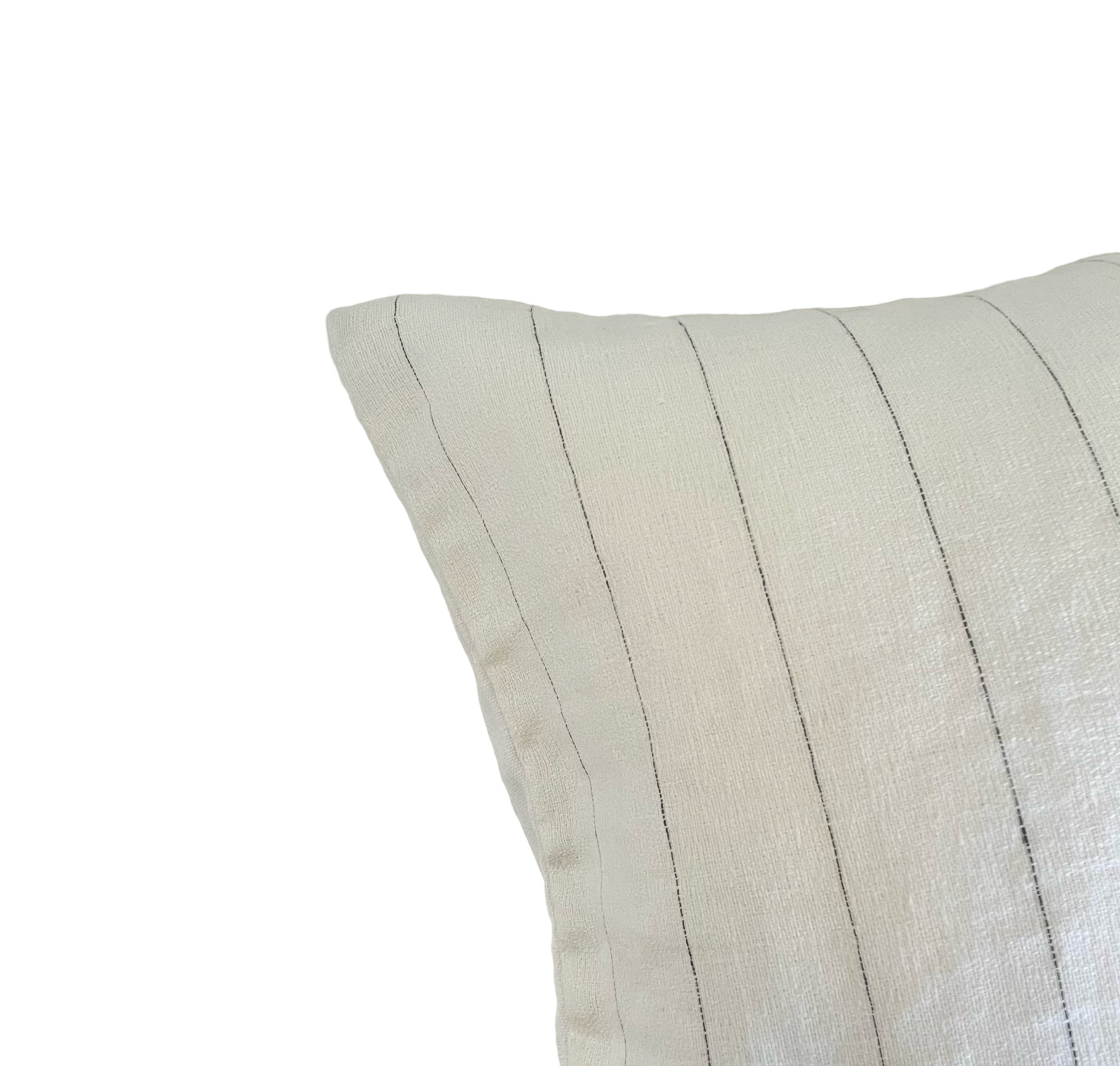 Elevate your seating with this sophisticated lumbar pillow, featuring a timeless thin stripe pattern in creamy white and black. The 14x22" size provides perfect support for sofas, chairs, and beds, adding both comfort and contemporary style to any room. Its classic color palette complements virtually any décor, while the structured design maintains its shape through everyday use. Transform your space with a pillow that balances aesthetic appeal with functional support.