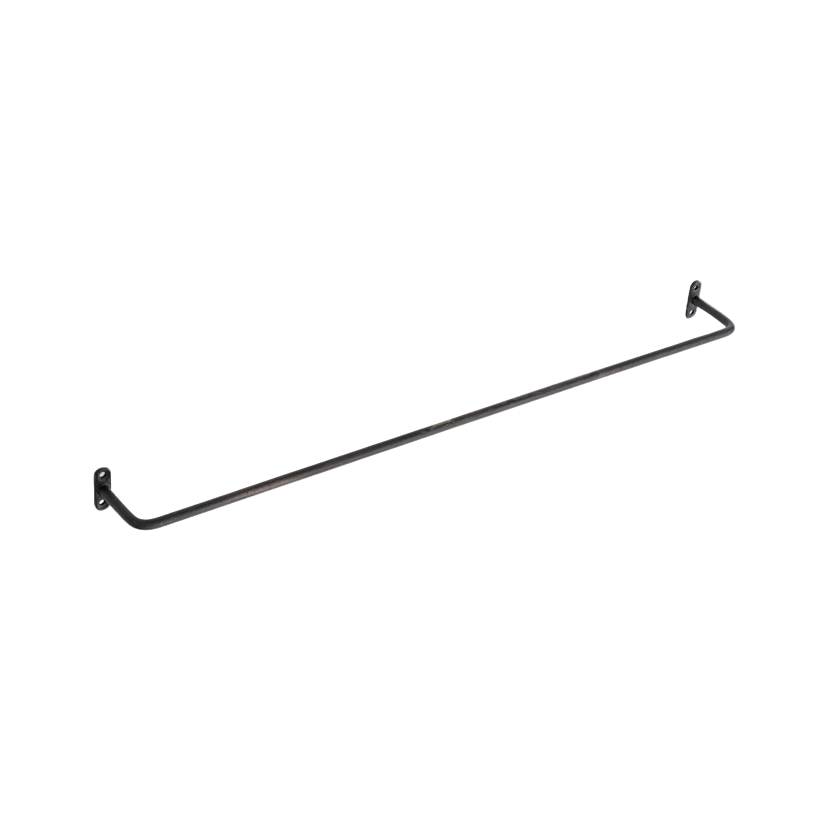 Simple, hand-wrought towel bar of iron with a matte black finish.