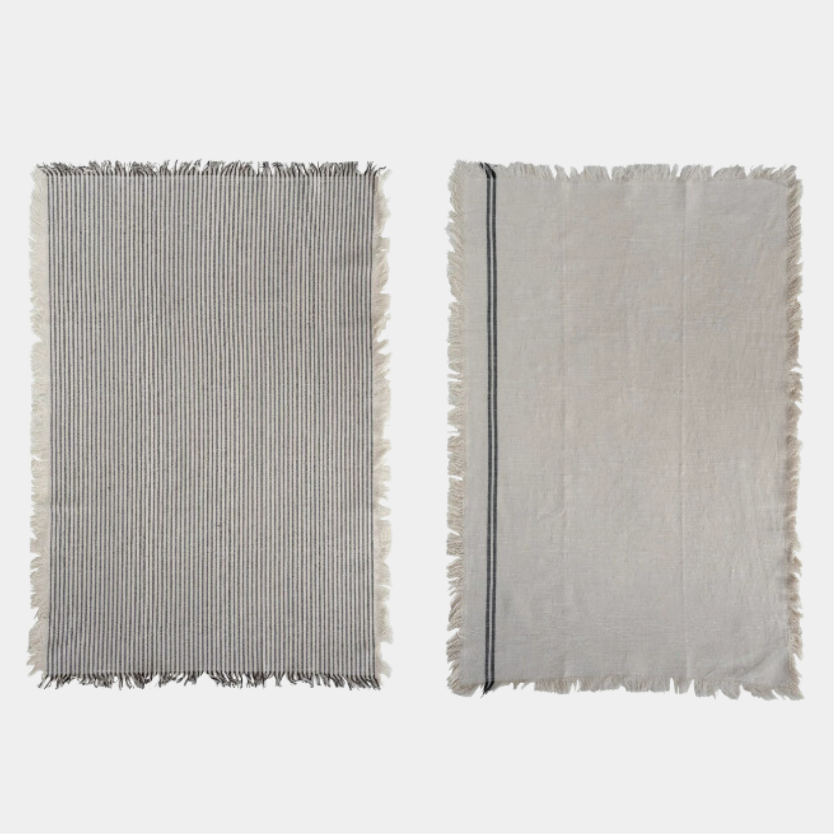 28"L x 18"W Woven Cotton Tea Towels w/ Stripes & Fringe, Natural & Black, Set of 2